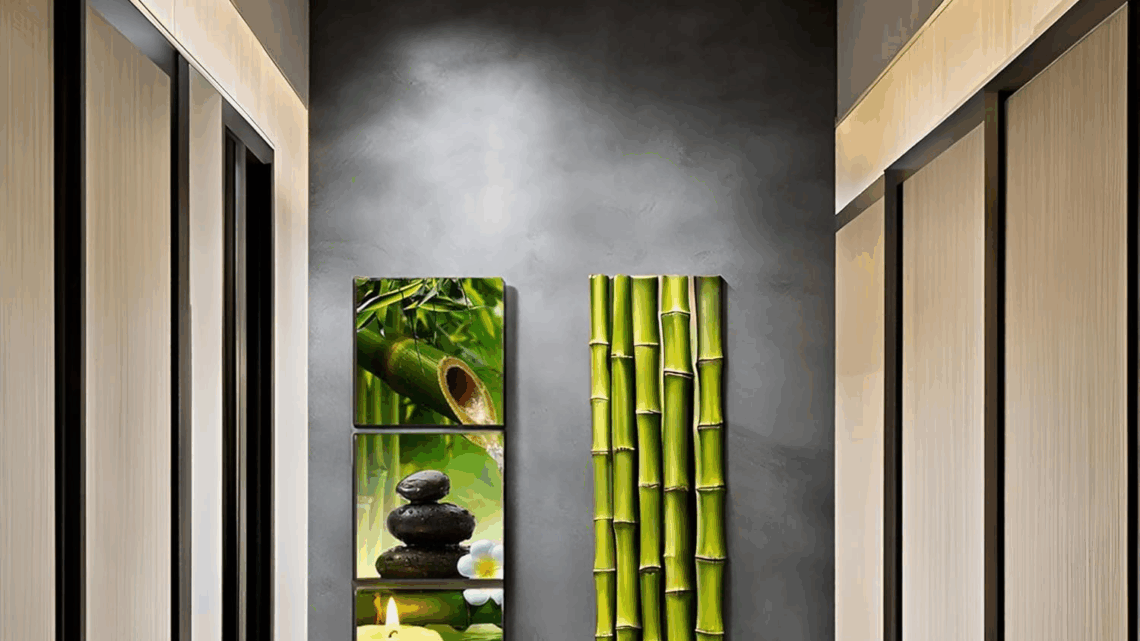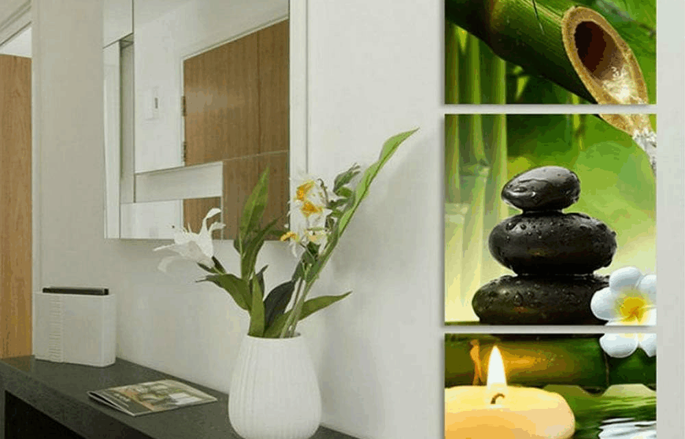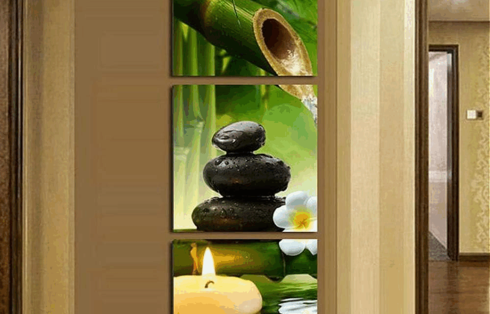 - SIZE:12x12inch,total 3 pieces.Green bamboo pebble decoration triptych,fresh vitality Zen,peace of mind,especially suitable for hanging in yoga room,Zen room, bedroom,shop,corridor,porch,living room,lounge,home and so on Bambú zen wall art