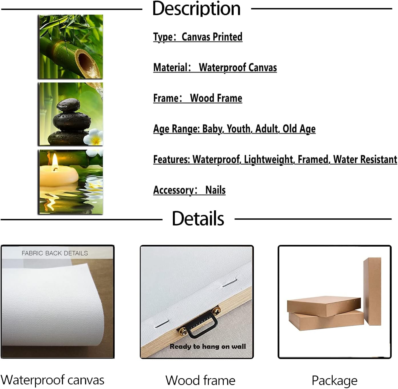 - USAGE EASY:HD printed canvas stretched and stapled to frames.The frame has been stretched and can be hung directly.Waterproof,UV-resistant,color fading-resistant more than 50 years indoor.High resolution giclee printing on premium canvas.bathroom wall decor natural bathroom decor zen decorative painting yoga healing painting